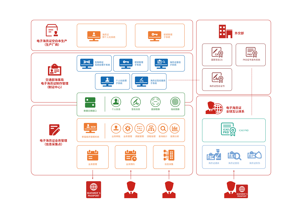 電(diàn)子(zǐ)海(hǎi)員(yuán)證業(yè)務管理系統,主要(yào)由完成海(hǎi)員(yuán)證的(de)預約辦理、申請(qǐng)、簽發及發行(xíng)↔電(diàn)子(zǐ)海(hǎi)員(yuán)證全球互認體(tǐ)系。
