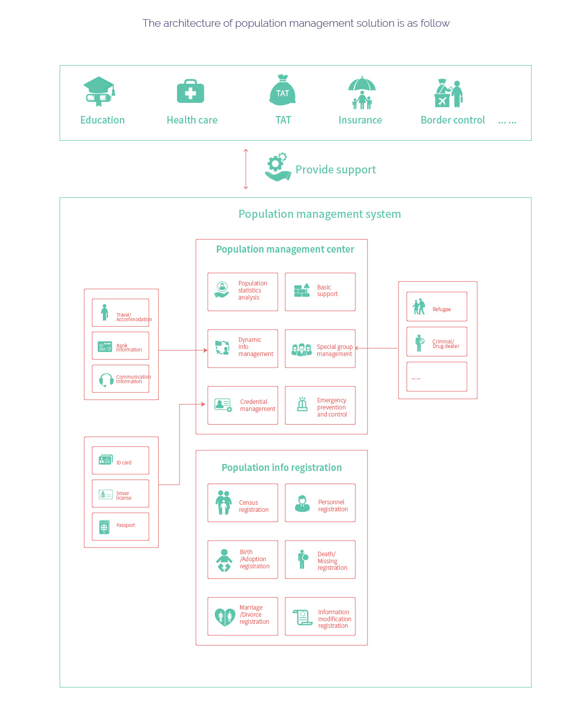 Population information resources, as a crucial national core "resource, is the basis for government affairs information dis≥closure and information sharing among various industries in the country, as well as a neces∏sary condition for the service and optimization of citizens' lives. An efficient an↓d practical population management solution will certaγinly promote the country's economic development and lower social crime ↕rates.