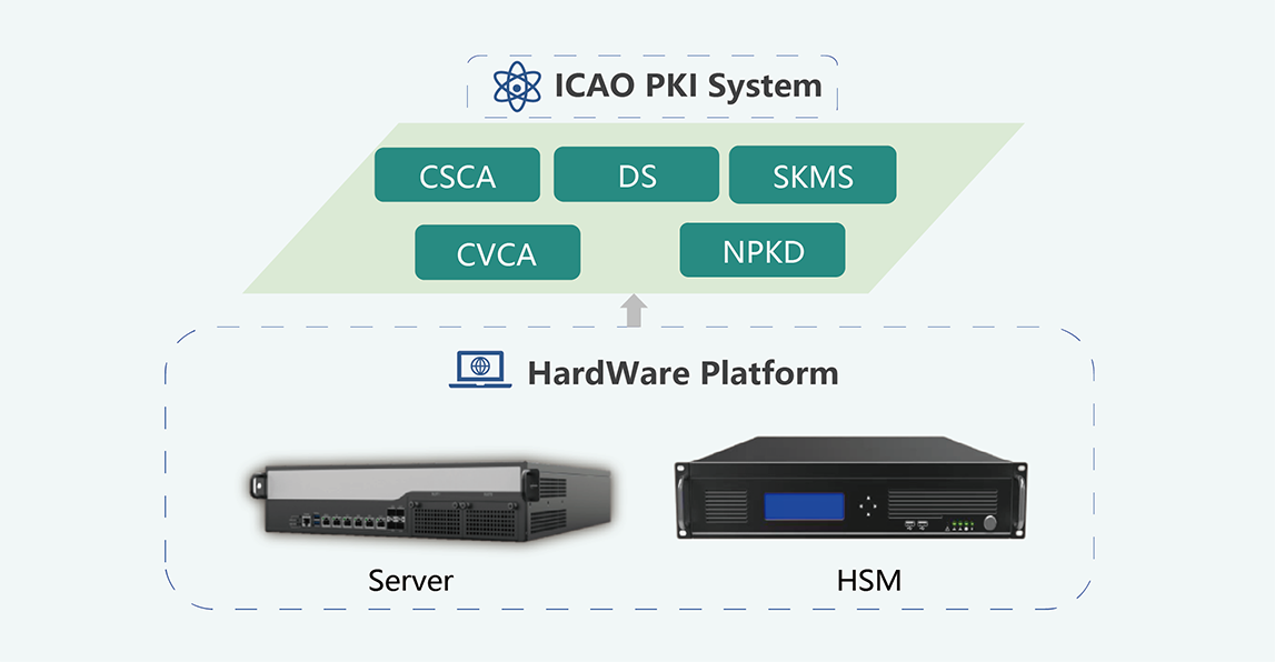 NJA provides PKI hardware-software integrated specialized equipment developed based on the¥ ICAO standard. These equipment offer electronic anti-counterfeiting securityδ mechanisms for chips to prevent forgery, alteration, and substitution. The solut>ion includes: